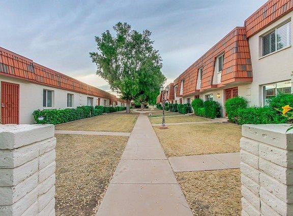 Fabulous Old Town Scottsdale Location! Move in Ready! Low HOA! Quiet complex nestled on Dead End Street with plenty of parking & interior unit! Private patio is perfectly appointed with luxurious Spa! Kinetico drinking water system, two oversize Master Suites w/ dual vanities & walk in closets, Large Gourmet kitchen w/ extra cabinets & pantry space, full size inside washer & dryer. Ceiling fans & cable in every room. Handicap equipped showers & baths & chairlift to second level. New interior paint w/ nearly new luxury furnishings Workshop/storage shed. 2 Car Carport attached to property, clubhouse, lush pool & children's playground. Easy access to the 101, 202 & all freeways. Walk, bike or take the Scottsdale trolley to spring training, golf, the park or old town.