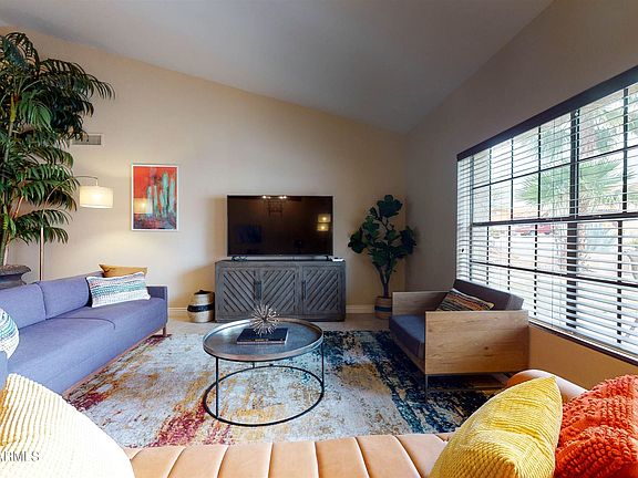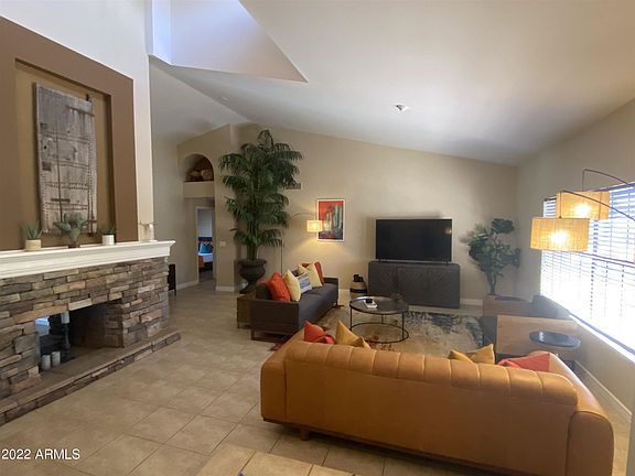 This updated home sits on the 7th fairway of the Pete Dye designed Red Mountain Ranch Golf Course. It also boasts incredible views of the stunning Red Mountain. When you enter, a gorgeous stone two-way fireplace catches your eye placed in the middle of the home. It adds a subtle division between two living areas. Kitchen has plenty of cabinets, granite counters breakfast bar, plus breakfast nook offers wonderful views out to your backyard oasis. Owner's suite has double door entry, vaulted ceilings, large walk-in closet, and a private entrance to the patio. Bedrooms 2 and 3 or split from master. Now...your backyard oasis. Step out, take a deep breath and relax. A covered patio runs the length of the home giving you plenty of shade when desired. There is a built in BBQ with a sit up