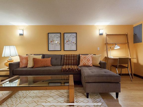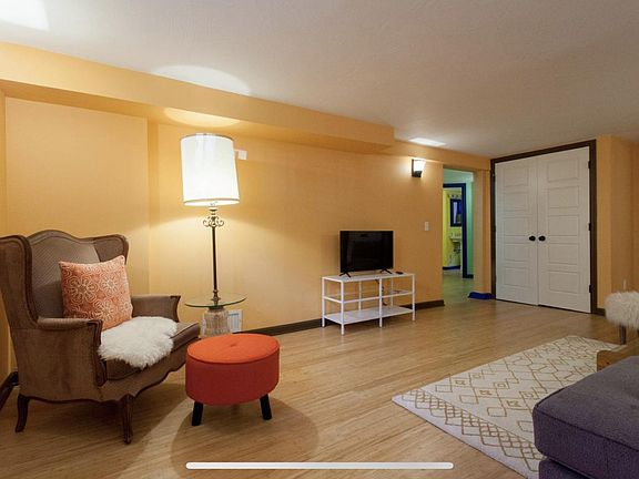 Unfurnished private space with separate entrance available March 1st in the finished basement of a house. 1 bedroom, large living room, full bathroom with large jacuzzi jet bathtub/shower, kitchenette. Shared basement laundry room with upstairs tenants. There are 2 large closets in the living room and 2 large closets in the bedroom, as well as ample storage closets in the bathroom. There is street parking outside the house. The basement is 1100 square feet. The house is located in the heart of the Williams District in NE Portland. It is in near walking distance to New Seasons, restaurants, parks, banks, etc. Walk Score of 92, Bike score 100 and transit score 54, You are located near everything here and can get to highways and bridges very easily. Upstairs tenants: The house upstairs is a 3 bedroom 2 bathroom with 2 siblings, a 43 yo F and 37 year old M and one small chihuahua terrier mix. We are mostly pretty quiet and very friendly. We are open to socializing and sharing the upstairs fuller kitchen with a downstairs tenant, but only if they are following strict Covid safety and distancing protocols. Otherwise, there will be a full kitchenette setup downstairs with induction cooktop, toaster oven, microwave, refrigerator, sink, counter space, etc. Rent includes utilities and up to 2 tenants. 1 cat or 1 small dog will be also considered with a $200 pet deposit. $1500 deposit for the room plus first month rent required for move in. Pictures included show the space when it was furnished as an airbnb. There are tenants down there now and the space is furnished differently and the paint color is white in all of the rooms pictured now except for the laundry room. Please wear masks and maintain distance when coming to see the space.