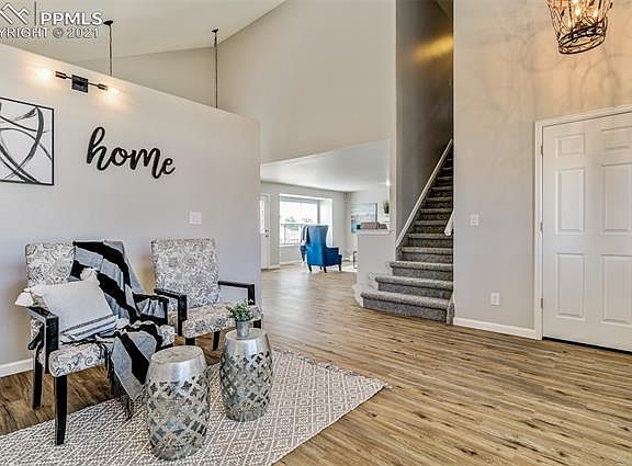 OMG, the views! Pikes Peak, Cheyenne Mountain, sunsets, did I mention the views? Gorgeous home with numerous updates! Lovely formal living room, new laminate flooring throughout most of the main level. Remodeled kitchen with stainless appliances, white cabinets with new handles, gray subway tile backsplash, island, bayed eating area. The kitchen opens to a warm family room with stacked stone gas fireplace and a walk out to large deck with (you guessed it), views! Guest bathroom and laundry area on the main level. The upper lever features new carpeting, a spacious master with ensuite 5 piece bathroom, walk in closet and (wait for it) views! There are 2 additional bedrooms upstairs with a full hallway bath. The walkout basement includes a HUGE family room, the 4th bedroom and a 3/4 bathroom. Do you have an obnoxious teenager? You would never need to see them again once they move downstairs, the basement door makes it much easier for them to sneak out. If only my parents had been that thoughtful. The basement would also make a wonderful in-law or out-law suite. Don't miss this wonderful home! See show remarks.