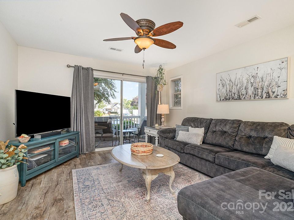 Opportunity knocks with this FIRST FLOOR, 3BR/2BA condo that is neat, clean, & move-in ready! Begin enjoying a hassle-free lifestyle immediately in this cozy gem nestled within the convenience of Harrisburg Town Center; Light, bright and contemporary -- white cabinets, quartz counter tops, LVT flooring in the main areas, ceiling fans & updated light fixtures throughout; Recent updates include water heater, dishwasher, disposal, & paint; Relax on the balcony, enjoy the open floor plan, or lounge by the community pool; Walk, jog, bike, or wheel to coffee shops, restaurants, parks, banks, grocery stores, & fitness centers; Conveniently located to I-85 & I-485, UNCC, Concord Mills, & just about anywhere; Why rent when you could own this great home?