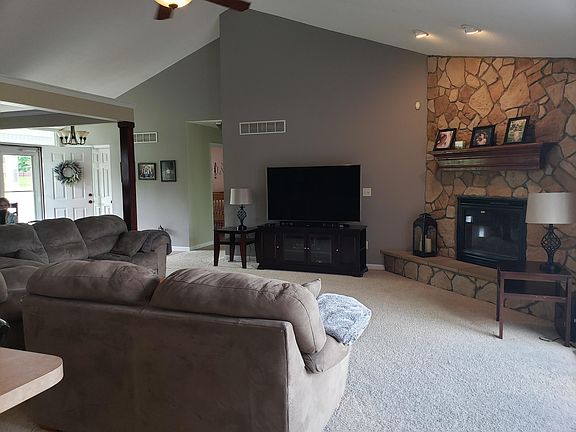 This is a beautiful country home offering 4 bedrooms and 2.5 baths in the Edgewood school district. This open concept ranch sits on 2.5 acres and features a fully stocked half acre pond for your own private retreat. Cathedral ceilings, hardwood floors,2 car attached garage, 2 car det. garage, stainless steel appliances, gas fire place, and fresh paint are all amenities you don't want to miss out on. Enjoy the extra storage space for all your toys with a deep, detached 2 car garage. The full unfinished basement is waiting for the new owner to finish as they choose. Spend time on the spacious front porch or go out back on the deck to entertain guests by the pond. Don't miss out on this gorgeous property built for you and your family!