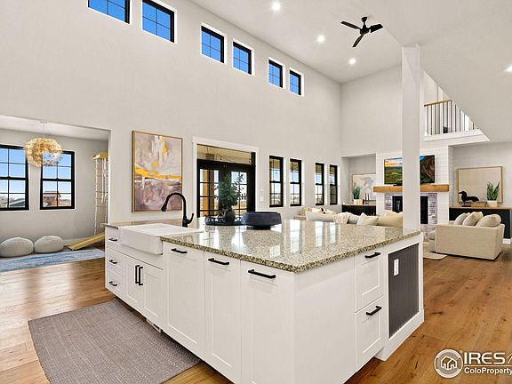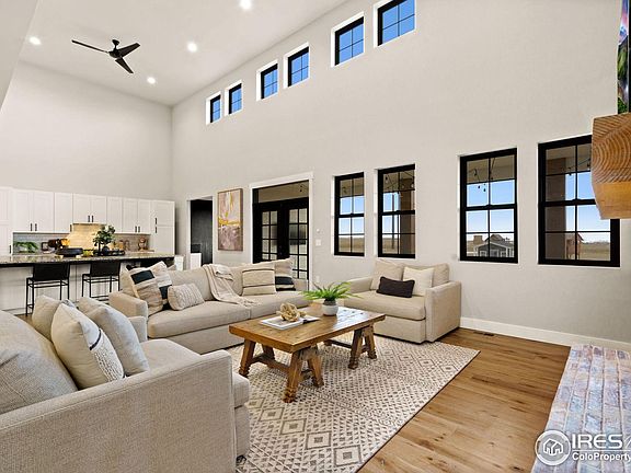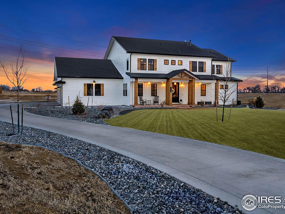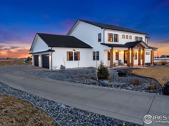 BACK ON THE MARKET DUE TO BUYERS UNABLE TO SELL THEIR HOME. Welcome to your modern farmhouse retreat nestled with expansive mountain views only 15 minutes to Fort Collins and Windsor! This stunning residence, completed in 2019, boasts a perfect blend of contemporary design & rustic charm, ensuring a comfortable & stylish living experience. As you step inside, one will be welcomed by warmth & style with plank hardwood floors, well placed accent walls & an inviting open floor plan. The gourmet kitchen is a chef's dream, equipped with double ovens, microwave drawer, soft close cabinets & drawers with pull outs, coffee station & a massive walk-in pantry. Whether you're a culinary enthusiast or enjoy hosting guests, this kitchen is designed to impress. Escape to the primary suite featuring a French door access to the back patio & loads of natural light. Lounge in the soaking tub or the generously sized double shower, both offering a spa-like experience. The large walk-in closet is not only spacious, but also includes washer & dryer hook ups for added convenience. Upstairs, is home to 4 generous sized bedrooms with walk in closets, jack-and-jill bathrooms, an open landing & convenient laundry room. The unfinished basement provides a blank canvas for future expansion. This home's new owner will appreciate all the smart home technology including exterior & doorbell cameras, security system, nest thermostats & room sensors plus dual zone heating & dual air conditioners. Enjoy a cup of coffee on the covered front & back porches. The property includes raised garden beds, allowing you to indulge your green thumb & the 4 car garage is deep enough to accommodate all your trucks & SUVs. With a substantial 5.78 acres in a gated community, privacy & tranquility are assured. This modern farmhouse is more than just a home; it's a lifestyle. Don't miss the opportunity to call this exceptional property your own. No horses allowed in this filing.