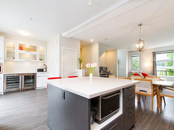 Bright 4 Bedroom, 3 Bathroom Townhome at Seven Peaks! This spacious townhome features an open concept main floor with 9' ceilings hosting 2 deck's, large living/dining area and beautiful kitchen. The owners have upgraded the kitchen with a Custom Coffee/Drink bar inclusive of cabinetry, Bosch built-in coffee machine, Kitchenaid wine cellar (dual zone), and Kitchenaid beverage center (dual zone). Upstairs features large primary bedroom with walk in closet and stunning ensuite, two additional bedrooms, laundry and bathroom. Ground floor hosting a 4th bedroom (or office), large double car garage, and ground level patio with grassy yard. Contact your realtor to set up a viewing of this wonderful home!