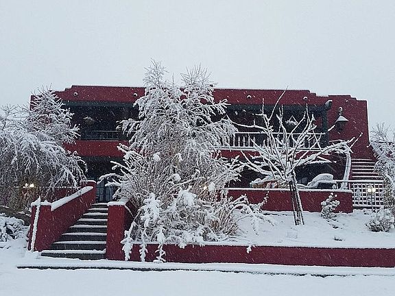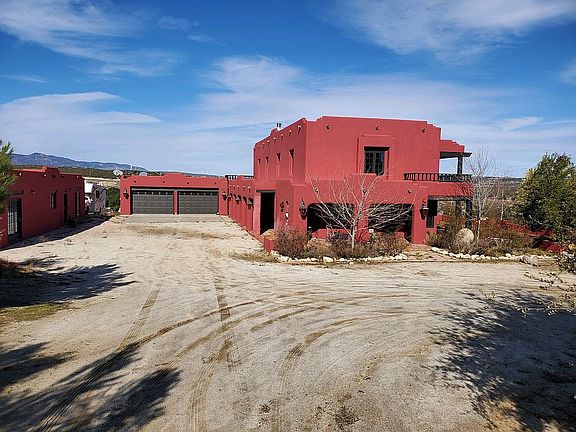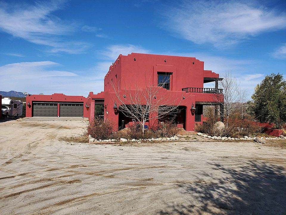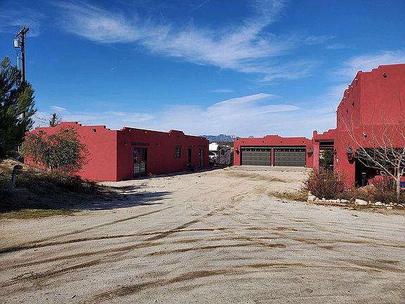Custom Hacienda home on 7.73 acres in wonderful gated community. Several small western town outbuildings, Established horse corrals, 4 car garage, extra permitted building, that could be granny flat, studio, workshop, storage, whatever you can imagine. 2,988 square foot 3 bedroom, 3 bath home. All bedrooms have baths en-suite. Updated kitchen with beautiful white quartz countertops and stainless steel appliances. Impressive mountain views from wrap around decks. This is alot of house for the money.