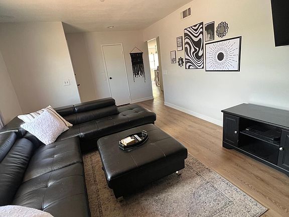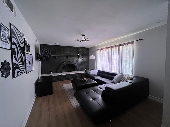 Adorable unfurnished 3 bedroom, 2 bathroom, 1202 square foot home, complete with laminate flooring and a remodeled master bath, with a big backyard and a covered patio. Granite countertop kitchen with fridge, stove/oven, microwave, and dishwasher. Full laundry located in the 2 car garage. Master bedroom w/ private bathroom with walk in shower. Bedroom 2 - standard bedroom with built in shelving and wardrobe. Bedroom 3 - standard bedroom w/ standard closet Living room with decorative fireplace All persons are hereby informed that all dwellings advertised are available on an equal opportunity basis, without discrimination based on race, color, religion, sex, handicap, familial status, or national origin. Utilities: Owner will pay trash and sewer bills. All other utility payments will be the tenants responsibility to set up and pay (Required: water, gas, pest control, electric) Parking: 2 car garage, driveway, and street parking. Pets: Dogs allowed upon approval, cats not allowed. Smoking: Outside only. Air filters must be changed monthly by the tenant. Lease duration: 1 year. Fees: Security deposit (refundable depending on condition of the house) - One months rent. Pet fee (non-refundable) - $200 per pet. Tenant is responsible for maintaining the landscaping (drip system) and keeping the property clean and damage free. Trash day is Friday.