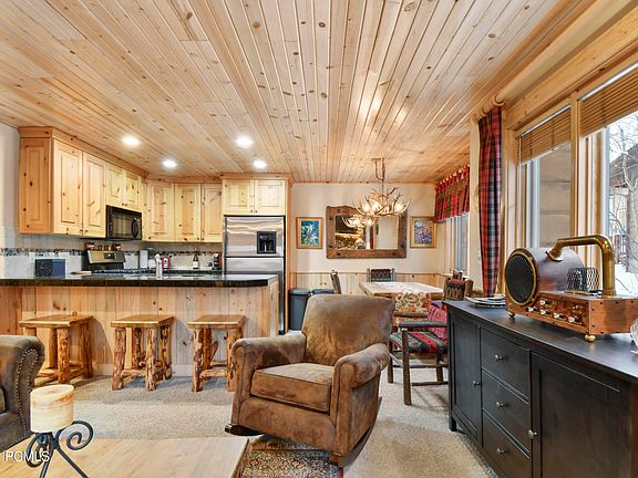 Timber Wolf Lodges have a convenient location at the entrance corridor to Park City Mountain Resort's Canyons Village and on the free bus route. That means you're only minutes away from one of the largest four-season resorts in the world, for various snow sports, summer hiking, biking, and golfing, restaurants, festivals, special events, and wildlife, too. 4C Timber Wolf has two primary suites with two full baths on the upper floor, with high ceilings, timber beams, slate tile floors, and jetted tubs. On the main level you'll find the fully equipped kitchen with granite counters and bar seating, the living room, informal dining, and half bath. Unit 4C has a rustic, mountain appeal with slate tile and carpeted floors, timber accents, and wood slat ceilings. The living room has a river rock gas fireplace, perfect on chilly Park City nights. The informal dining is adjacent, and the unit offers radiant heating. Relax après ski in the common area hot tub. 4C Timber Wolf Lodges has an assigned, heated parking space, unassigned guest parking, plenty of storage, and approximately 1,054 square feet of living space. Standard utilities are included in HOA dues. It is within walking distance of the Cabriolet lift (open air gondola only a 5 to 10-minute walk away), which takes you directly to the Canyons Village skiing. Ski the golf course cart path right back to the complex.