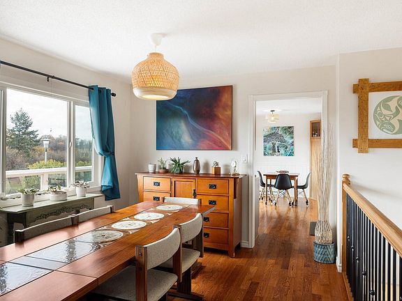Welcome to your Saanich East sanctuary — a beautifully updated 5-bed, 3-bath home with sweeping south facing views over Swan Lake. Thoughtfully designed for modern living, this residence combines warmth, comfort, & sustainability. Recent upgrades include; metal roof & a 26-panel solar array (2023), achieving near net-zero energy efficiency without the hot tub & better than net zero with the wood stove, 200-amp & an impressive 2.4 energy rating—better than new. Bright, sun-filled interiors feature oak floors, quartz countertops, fresh paint, & a new lower-level kitchen area —ideal for guests or extended family. A new back deck & private office entrance make working from home both functional & inspiring. Relax by the wood stove, or enjoy the outdoors surrounded by mature fig & pear trees, dry stack rock wall, & serene lake views. Every detail, from upgraded lighting to quality finishes, reflects exceptional pride of ownership. A rare opportunity in this desirable neighbourhood!