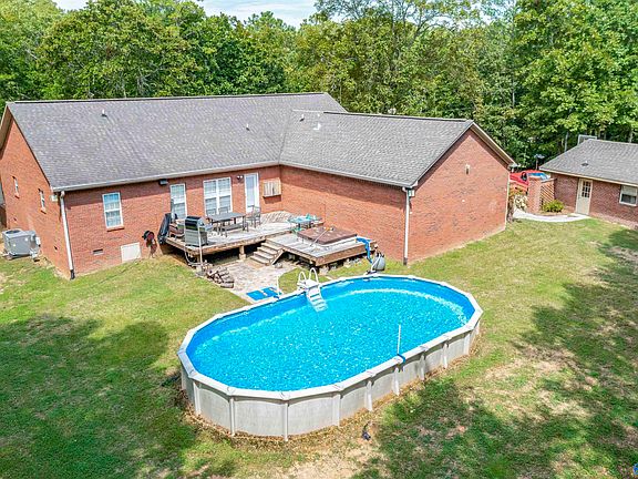 Southside -- Secluded & private full brick home sited on 5+/-ac; Great 4BR/2.5BA offering large welcoming front porch w/collumns, Foyer, Formal DR, Great Room w/ vaulted ceiling; Kitchen w/ granite c-tops, SS appliances, 5-burner gas stove, pantry, Large laundry room w/ storage; Split floor plan w/Private Master Suite w/ WI closet; Master BA w/jetted tub & sep shower, dbl vanities; Oversized dbl garage; Det building w/garage; Possible in-law suite w/central H/A or workshop area; Utility building, AG pool, multi-level deck, patio; Tile & hardwood flooring, recessed lighting, sidewalk, concrete drive.