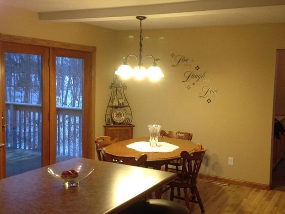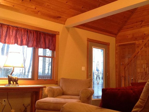 Come enjoy the peace and quiet on over 3 Acres. This country cape cod charmer log home was engineered and built with quality and integrity. 2x6 construction, Anderson windows D-logs. This boost 3 bedrooms + 1 non conforming bedroom/office, 2full baths, master suite with a built in Sauna for those cold days or stress reliever for all that ails you! Suite also has a deck for those beautiful sunsets. Kitchen with custom cabinets and an island. Large dinning room, French door to a deck for entertaining or just enjoying the sounds of Mother Nature. Home boost an open entryway with knotty pine. Walkout basement includes family room, wired with surround sound,work shop and utility room. Garage Set up for wood burning, boiler heat system. Large 24x32 garage with workshop!