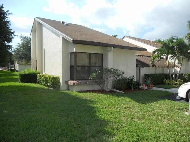 Are you ready for Florida living at it's easiest? Tucked away among the trees, a corner, 2 bdrm/2 bath villa with an oversized den and large patio is waiting for you. Near the turnpike and Lake Worth Road but away from ALL the noise and traffic that being in the center of it all usually means. This villa stands out for because of the upkeep and upgrades including wood floors, stainless appliances, new A/C, newer water heater and a new roof 2015. HOA includes 2 full service clubhouses and includes a dance room and stage. The pools overlook beautiful lakes and it is a relaxing pleasure to stroll around the neighborhood and meet new friends.