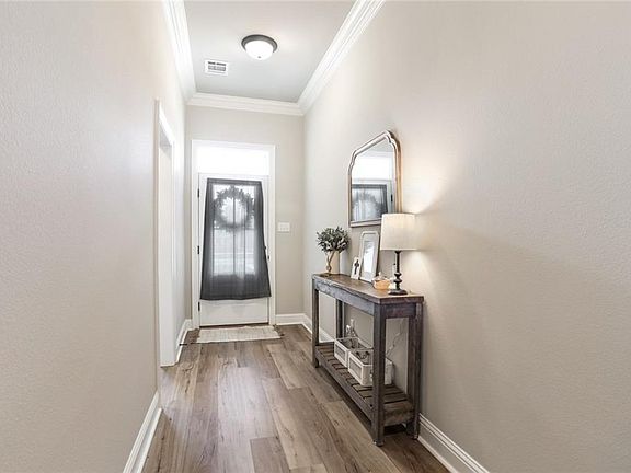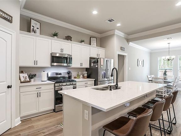 Move Right In to this less than a year old home!!! 3 bed, 2 bath upgraded home with No Carpet, luxury Vinyl Flooring throughout. Upgraded Quartz Counters, Open Kitchen and Den!! Mud Room, Master with access to Laundry! Double Vanities, Separate shower, oversized closet! Covered Patio backs up to Greenspace! New Fenced Yard!