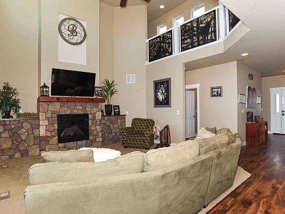 Beautiful custom home located in quiet gated community of $1mil+ homes - only minutes to Ft. Collins & Greeley areas. This lovely home offers a light, open floorplan, 2 story great room with cozy fireplace - perfect for entertaining or enjoying a family evening. The kitchen boasts knotty alder cabinets, abundant counter space, pantry, island, stainless steel appliances and dining area. Begin & end your day in the spacious main floor master, well designed with huge walk-in closet & 5 pc bath complete w/ stunning shower & dual shower heads.The full basement offers unlimited possibilities for additional bedrooms, bathroom, game room, etc. Add. features: 3 car fin att. garage, south facing driveway, 40 x 40 shop w/220, RV sewer dump, bathroom rough-in, nearly 4 ac lot, mountain views, prof. landscaping, dog run, backs to pvt farm. Great country feel, yet close to conveniences. Too much to list! NO HORSES OR LIVESTOCK ALLOWED.