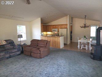 This single level home, has an Open floor plan, 2 bedrooms, 2 baths, gas kitchen range, propane stove for heating. Open front deck to sit and enjoy the open grass pasture and forest trees surrounding. Outside of Sumpter city limits. Breezeway attached oversized double car garage with separated large workshop. LARGE pole barn, small animal building. Acreage is Cross fenced. Some personal property may be purchased with house, Master bed mattress, drvwy fence, stock tanks are not part of sale.