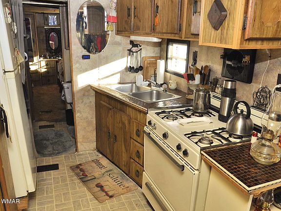 Two travel trailers connected together creating a 2BD/1BA, 496 sq ft living space. Property is off grid, for those wanting to live sustainably and self sufficient. 1.1 acres fenced, keeping cattle out. Organic gardens, hoop house, organic herb garden. Chicken pen. 12 x 14 metal shed. Solar system. 2800 gal water holding tank, currently hooked into neighboring well (not a permanent situation). Property also currently hooked into neighboring septic (not a permanent situation). One trailer is a 1979, 8 x40 with tip out, and one trailer is a 1978, 8 x 22. Wood burning stove and 2 propane wall units keep home warm. County maintained roads to the property and only 15.2 miles from Snowflake Main St. Owner may carry a small amount.