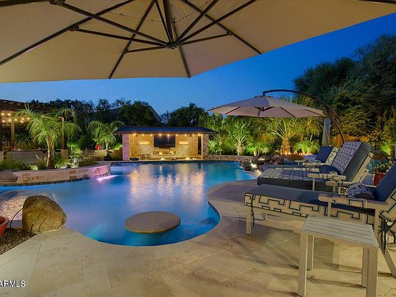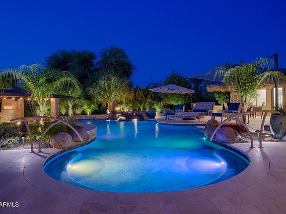 An amazing Estate located in a quiet, gated 20 lot community of NE Mesa takes you to a tropical getaway! The private back yard offers you the lifestyle of the Rich & Famous. You'll love the newly constructed pool & swim up bar, featuring its own misting system, LED lighting, jetted seating area & H2O features. All new landscape makes this home feel like a boutique hotel. You'll love the glamorous owner's suite w/ a closet & finishes to die for. A 2nd master suite at the other end of the home + a spacious 3rd BR en-suite in main house makes this ideal for Multi Gen living. Stunning gourmet kitchen w/ pro grade appliances, 2 large islands, walk in pantry & a view to paradise. A custom wine cellar is a showpiece in the family room. The casita + pool bath & detached garage w/ AC are a must see Most of the interior has been renovated between 2019-2021. All new owner's suite & closet system. Previously a portion of the closet was another bedroom. This owner's suite actually offers 2 full bathrooms plus a closet the size of another large bedroom.