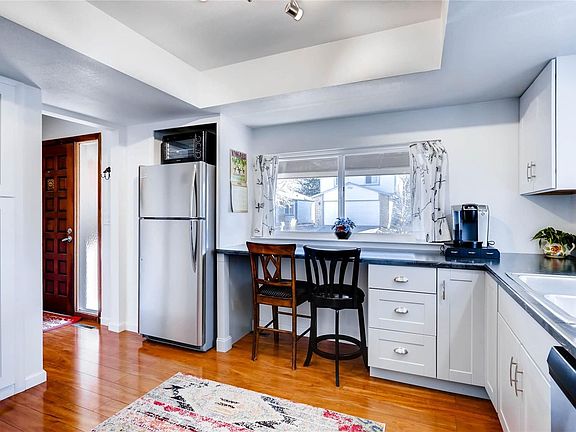 Spacious 3BR + 3BA + 2 car attached garage. Brand new kitchen 2018. Roof new in 2013.Garden area in large, fenced lot. Over 1800 finished sf. Move in condition. Family room with wood-burning fireplace. Mostly wood floors; some carpet. Mostly neutral colors. Vaulted ceilings on upper level. Small community of patio homes in Pier Point Village 3. Across the street from Cherry Creek State Park. Close to Meadow Hills golf course. Cherry Creek Schools. Pool and tennis courts are not part of the HOA. Low annual HOA dues, less than $700.