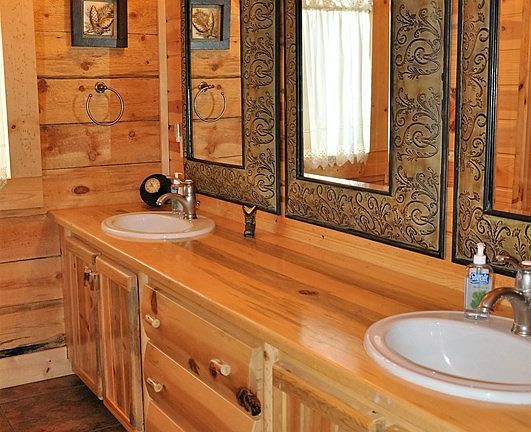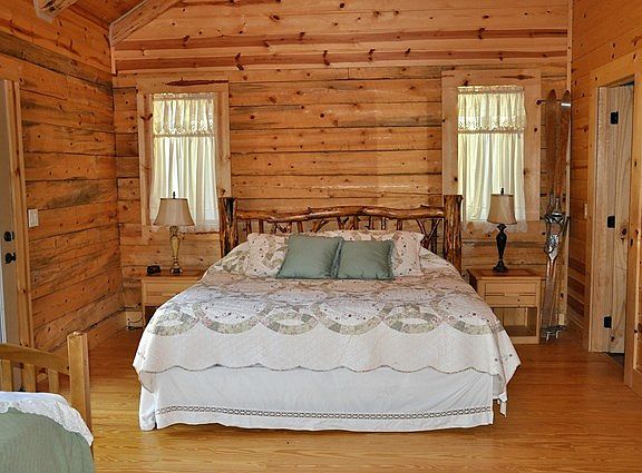 Beautiful log home perfect for a large family or two families to share. There are seven bedrooms & four baths on two floors & a loft that is set up to sleep another five people. The gorgeous log interior and river rock fireplace are complimented by heart pine flooring - a wall of windows offers views of the woods that are peaceful and quiet. The kitchen features stainless steel appliances and live edge blue stain pine countertops. The master bath has a double sink vanity. A second living space downstairs is set up as a game room with foosball and ping pong tables The large two car garage has room for lots of toys and also has an unfinished bonus room above it. Decks all around are the ideal place for entertaining outdoors in the summer. This is the perfect log cabin in the woods!