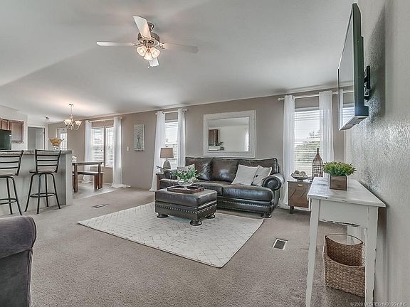 Move In Ready!Solitaire 17X80(per title/purchase agreement)3 bed, 2 bath mobile home EXCELLENT condition on 15 acres.Two parcels-partially wooded w/pond.Home features open concept living area w/ tape & textured walls, large kitchen & utility room.Septic, water, electric & 2 carports (18x21 & 18x42) new in 2017. PLUS there is a 40 ft shipping container perfect for storage/workshop. Fenced on 3 sides.Would make a BEAUTIFUL building sight! Peaceful country living close proximity to Bartlesville,Owasso,Tulsa.