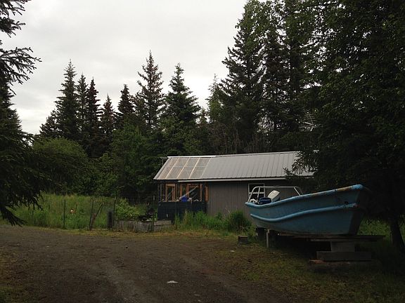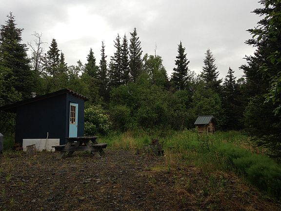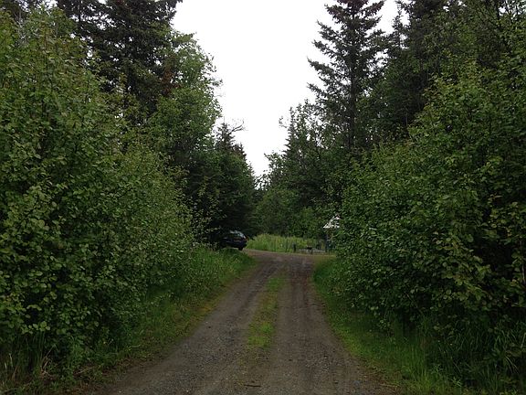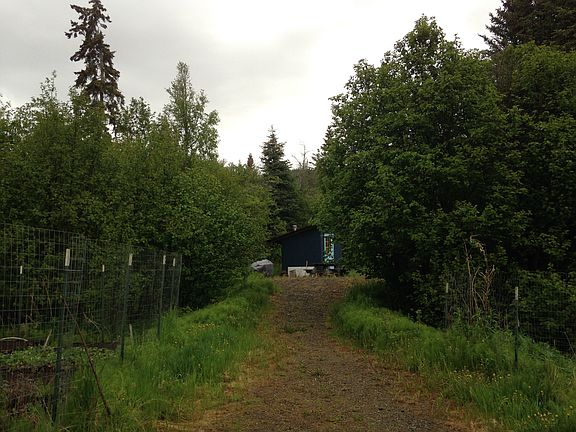 2.47 acres with 12x16 dry cabin and 16x20 shed. Electric, driveway, building pad, sauna, and fenced garden already in place. Creek borders the property with mixed alder, spruce, and birch.