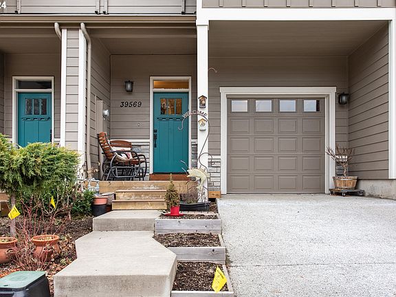 This Luxury townhouse located in downtown Sandy has 3 bedrooms, 2.5 baths & a one car garage with built in storage racks and a custom workbench as well as a 220v receptacle for charging Electric cars. The open kitchen has quartz countertops & stainless-steel appliances and a wraparound tile backsplash. The lower level has beautiful laminate flooring, a half bath, and an open concept great room with a gas fireplace & dining area. The upper level includes two bedrooms, a shared bath w/2-sinks, a laundry area, a generous loft area, as well as a primary suite with a walk-in closet and a lovely bath with a dual sink vanity and walk in shower. The back yard is landscaped and fenced and has a patio with a gas hook up for the barbecue. The front yard has been lovingly landscaped with terraced garden boxes for veggies and perennials and maturing rose bushes. There is no HOA. Just at the end of the dead-end road is the gorgeous Meinig Memorial Park which sports an Amphitheater and a stage for summer concerts and events as well as paved pathways and trails, covered shelters for picnics, and play areas. Don't miss out on this beautiful townhome right in the heart of beautiful Sandy, OR and just a 1/2 hour up to all of the wonder that Mt. Hood has to offer! OPEN HOUSE Saturday Feb. 3rd from 12-3.