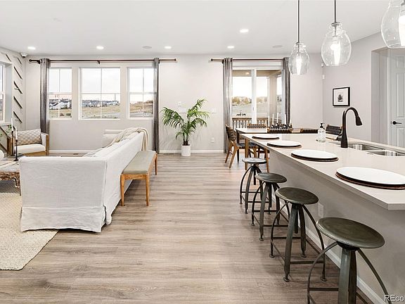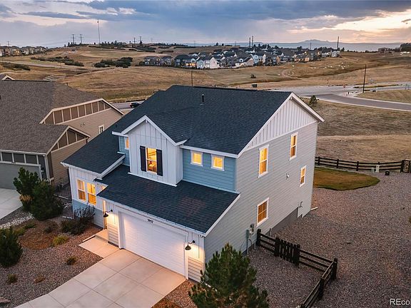 Situated on one of the best lots in the neighborhood, this gorgeous Georgetown model by Taylor Morrison City Collection truly has it all. Previously the model home, it is overflowing with builder upgrades and custom touches, but step outside for the wow factor! As the kitchen starts to glow at sunset, step outside to your oversized Trex deck with mountain views and open space. The stunning kitchen flows seamlessly into the great room and dining area while showcasing designer finishes and custom accent walls. The study is privately located at the front of the home. This two-story model offers 4 bedrooms upstairs, including a spacious owner's suite with luxurious 5-piece bath, walk-in closet, and mountain views. Take in your own little slice of paradise! The upstairs is rounded out by another full bathroom and upstairs laundry. Other upgrades include a 3-car tandem garage, custom window treatments throughout, garden level basement, GE Appliances including a Washer/Dryer, and an included flat screen TV.Beyond this prime cul-de-sac location, The Spoke at Macanta serves as a thriving gathering place complemented by a pool, park, and fitness center. Outdoor enthusiasts will delight in the 450-acre Macanta Regional Park and 13 miles of mountain bike trails, inviting endless adventures and exploration. Welcome to your dream home!