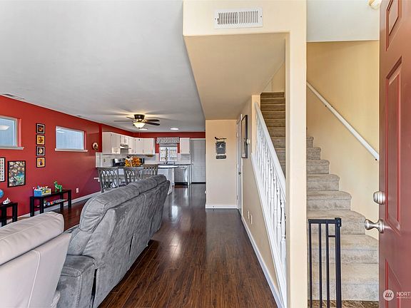 Come and view this beautiful 2 story home with 3 bedrooms, 1 3/4 baths, 1246 sqft and two car garage. (Check out the office in the garage, The sound proof cubicle will go with the Seller) Home is freshly painted outside and in. Kitchen has updated counter tops and backsplash. Most windows have been replaced and newer carpet in bedrooms. Upstairs laundry area. View of the playground from the front of home. Fully fenced and private backyard. Roof is only 9-10 years old. Walk to bus hub. Minutes to shopping, Olympic College, PSNS and minutes to Bremerton/Seattle ferry.