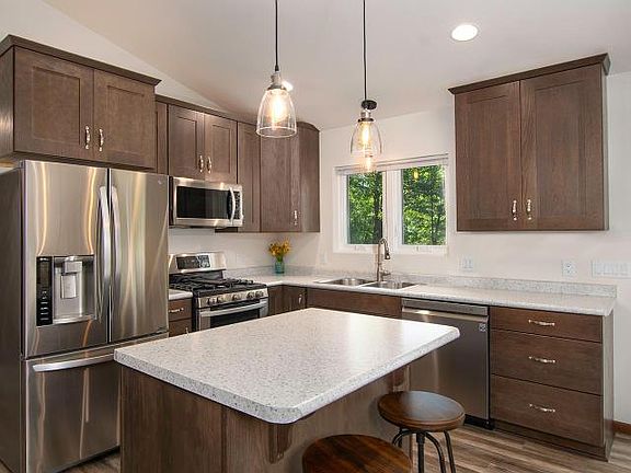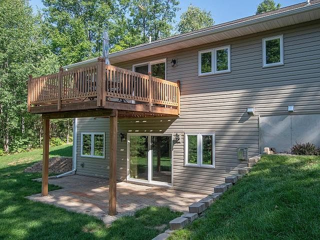 NEW CORNERSTONE CONSTRUCTION 4BR/3BA HOME! This brand-new home will save you all the work and is move-in ready. The home features Natural gas, central air, and a gas fireplace located in lower level. A walk out patio door upstairs leads onto a beautiful deck and there is a walk out from the lower level too. The Great room is open and bright with cathedral ceilings and lots of natural light. The Master Suite, an additional bedroom and study are also situated on the first floor. The lower level has a huge finished area with all new flooring. There is a bedroom w/walk-in closet and a bathroom too. The home is quality construction with Pella windows and low maintenance vinyl siding. It located about 3 miles from Eagle River on secluded wooded lot. The sweet little front porch invites you to spend quiet evenings enjoying wonderful views of the deer and other wildlife coming and going.