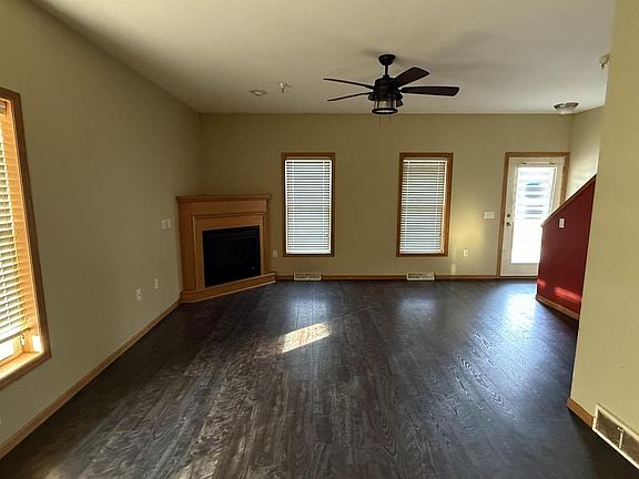 This end unit townhouse-style condo features a functional layout across multiple levels. The main level features living room w/ corner, gas fireplace, open kitchen w/ breakfast bar, dining area, office/flex room, and half bath with laundry! Upstairs, you will find the primary bedroom with a private bath & walk-in closet, two additional bedrooms, and a second full bath. The lower level includes a partially finished, exposed basement with walkout to the yard and two-car attached tandem garage. Close to shops, dining, schools, and parks!