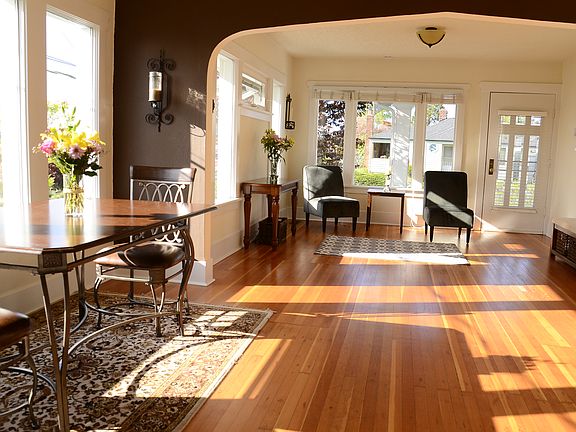 Built in 1919, this fully fenced Craftsman home utilizes all of it's 1930 sqft, This 3 bedroom 2 bath spacious home is perched on a corner lot with magnificent views of Puget Sound and Olympics. 2 car garage with tons of storage including ceiling storage makes it ideal for an active lifestyle. Upstairs enjoy BBQing on your 870 sqft deck above the garage. Enjoy the jacuzzi tub and a movie in the theater room downstairs!