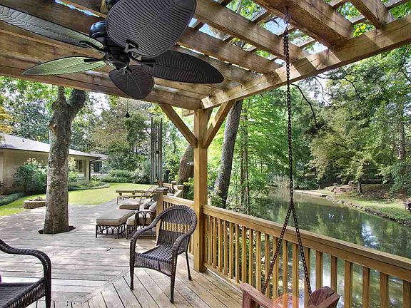 Mid Century Modern Flairs! Renovated with Loads of Natural Light! Heart Pine Floors! One Level with only Bonus Room Upstairs! Greatroom and Entry with Stacked Stone Wall and Fireplace! Formal Dining Room! Living Room or Music Room! Greatroom French Door Opens to a Beautiful Backyard! Sunfilled Kitchen with Breakfast Space and Eat at Bar! Keeping Room abounding in Natural Light! Culinary Kitchen! Upper End Appliances and Gas Cooktop! Two Dishwashers! Built In Sub Zero Refrigerator plus Ref. Drawers! Walk in Pantry! Large Laundry Room with Dishwasher, Sink and Subzero! Three Secondary Bedrooms with 3 Baths! Large Master Suite and Sitting Area! Stone Surfaces in the Master Bath with His and Her Vanities and Walk in Closets! Garden Tub and Oversized Shower! Entertaining Spaces Throughout! Deck! Screened Backporch! Covered Backporch! Professionally Landscaped! Overlooks a portion of the Lake! 3 Car Garage!