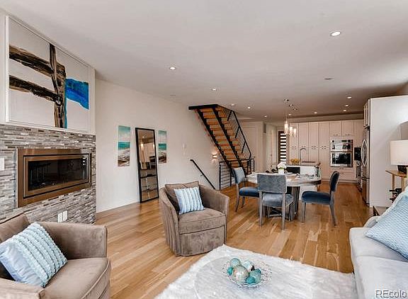 Located only one block from famed Tennyson Street, in the highly-esteemed Berkeley neighborhood, this contemporary townhome melds magnificent cutting-edge design with superior quality construction! Guests will marvel at 5??? plank hardwoods, custom steel banisters and amazing floating wood staircase, while busy professionals will appreciate the street-side study!! The hub of your events will be the fabulous chef???s delight island kitchen, boasting stainless KitchenAid appliances, custom cabinets, tile back splash and gorgeous quartz counters! Relax in the main living area or venture out to the patio for light conversation around the cozy fire pit! Your spacious Master Suite is complemented with an en suite bathroom featuring quartz counters and gorgeous custom tile work! The top floor boasts a rec area, wet bar, half bath and balcony for evening stargazing! A family room, bedroom, bath, and wet bar highlight the finished basement! Walk to Cesar Chavez Park & Tennyson St shops! A MUST SEE!