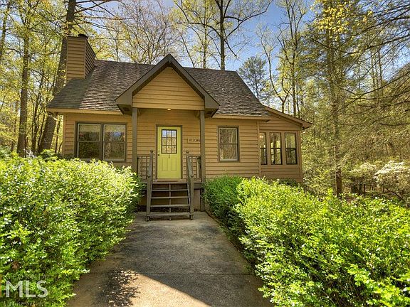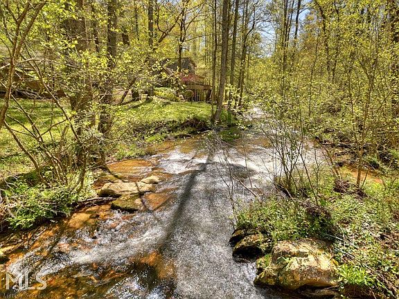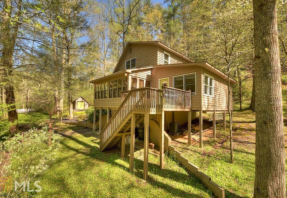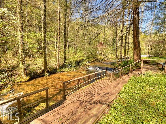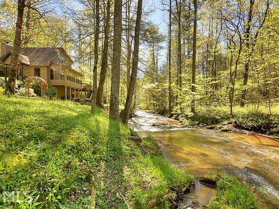 Check out the "WOW" setting of this adorable cabin that sits directly next to cascading "East Mountaintown Creek"! Hear & see the creek as soon as you step out of the car. You will love all the decks that overlook the creek, including a terraced deck that runs along the creek bank, plus outdoor fire pit area. Main floor has 2 living areas, including a cozy den w/exposed beams & gas log FP. Sunroom off the kitchen w/great view & sounds of the creek. Full bath & laundry on main. Upper level consists of 2 bedrooms/full bath. Basement is heated & cooled w/good storage & workshop area. Most furnishings can stay (w/exception of few items). Outdoor storage shed included. Located across the road from over 19K acres of National Forest, close to Pinhoti trail.