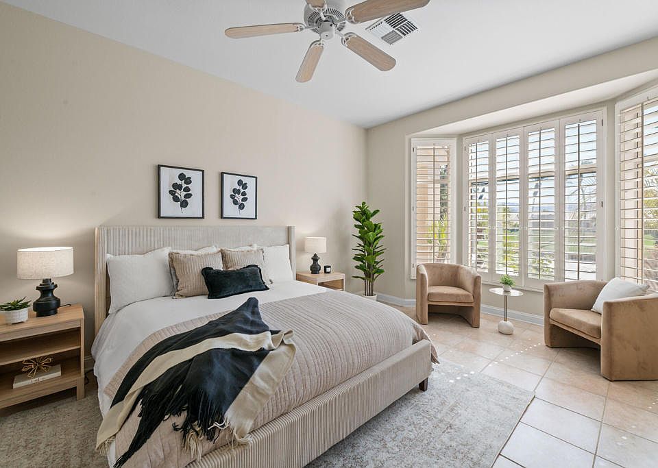 Best Deal in Sun City - Below Appraised Value!Act fast! This stunning golf course property was purchased for $620K in 2022 and is now listed well below market value--an incredible opportunity in Sun City, the most desirable 55+ community in the Coachella Valley.Perched above the 5th green of the Santa Rosa Golf Course, this Marrakech model features a large east-facing patio--perfect for morning sun and uninterrupted views of the manicured fairways and surrounding mountains.Inside, you'll find an open-concept layout with a spacious living room, dining area, and updated kitchen. The home includes 2 bedrooms plus a flexible third room--ideal as a guest room, private office, or cozy den.The primary suite boasts bay windows with panoramic golf course views, a generous walk-in closet, and an en-suite bathroom. The second bedroom is well-sized with an adjacent full bath. Additional highlights include a laundry room with built-in storage, a 2-car garage with space for a golf cart, and recently replaced appliances.Even the golf cart is negotiable!Enjoy access to resort-style amenities including multiple pools, clubhouses, restaurants, a post office, golf, and scenic walking paths--all just steps from your front door.Don't miss this rare chance to own one of the best-located homes in Sun City at a phenomenal value.