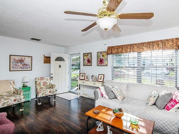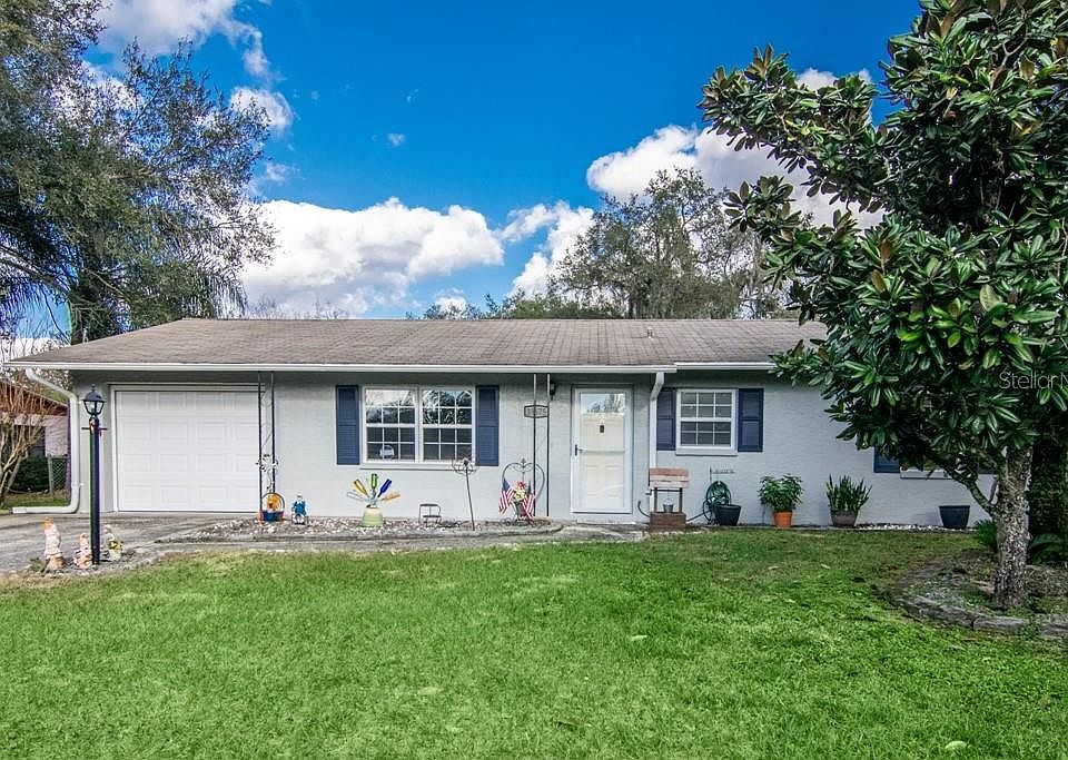 SOLID AND PRETTY: 2 bedroom, 2 bath block home with fenced back yard and one car garage with screen door. Large eat in kitchen and the den could easily convert to a 3rd bedroom. The entire home is accented with tile and laminate through out. The windows have been replaced here and the HVAC new in 2018. Clean and well cared for. NO HOA fees or CDD in this community. Close to recreation and dog parks. Perfect for full time living or winter nest.