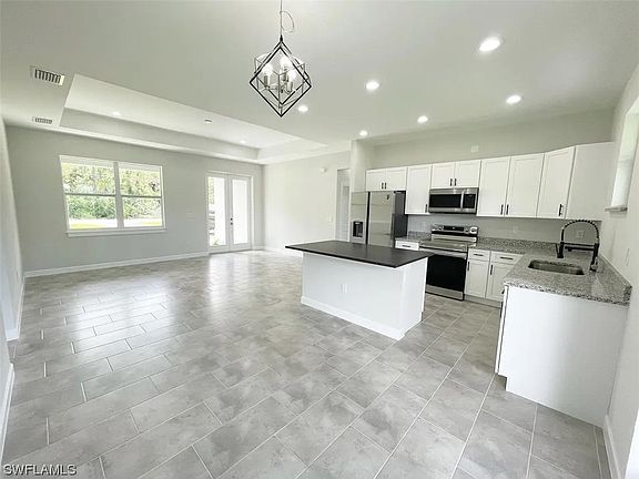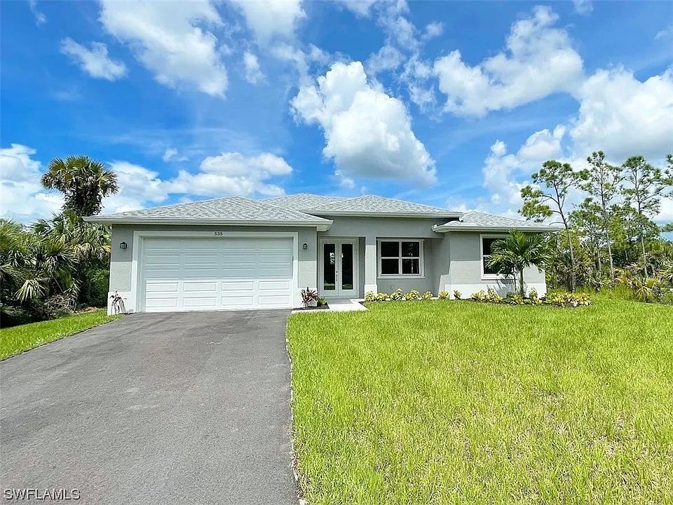 This Daytona Model is situated on a 1.59 acre lot. Spacious floor plan with over 1546 square feet. 3 bedroom +2 baths. This home offers luxury living and designer touches which are evident throughout. Features include: 24" porcelain tile throughout, 36" wood shaker kitchen Cabinets with Granite counters, full kitchen appliance package, walk in pantry, LED & pendant lighting over the island. Primary Bedroom with large walk in closet, full bath with tiled walk in shower and two vanities. Den with double door entry. Taexes pest control with termite baiting system, dimensional shingle roof and Gravity fed septic system with generator friendly water equipment and WHOLE HOUSE REVERSE OSMOSIS.. PHOTOS ARE OF A SIMILAR PREVIOSLY COMPLETED MODEL WITH A DIFFERENT KITCHEN LAYOUT. FINISHES SUCH AS TILE, FIXTURES, COLOR WILL VARY. PLEASE REFER TO THE FLOOR PLAN IN THE PHOTOS TO SEE LAYOUT OF KITCHEN. This home is close to shopping, dining and the coming Big Corkscrew Island Regional Park. Completion date scheduled for NOVEMBER/DECEMBERL OF 2023.