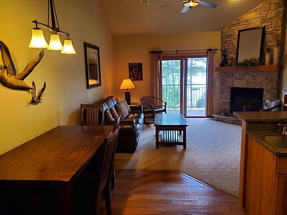This beautiful turn-key condo is located on the third floor of the iconic Eagle Waters Kee-mi-con Lodge. Grand westerly views of Eagle Lake are unobstructed, and you overlook the pool and picnicking area. This condo has a history of great rentals, so you can choose your time and rent it out for return-on-investment, either yourself or the onsite management company. This spacious condo has two large bedrooms and a sleeping loft, two full bathrooms (one with a walk-in glass-and-tile shower), walk-in closet, open-concept living/dining/kitchen with a cozy gas fireplace. The amenities at Eagle Waters include a full-service restaurant, heated pool, fitness center, sauna, tennis courts and much more. With no chores to do, and extra income, this is a great way to play in the North Woods. On or near snomo, ATV/UTV and bike trails, national forest lands, and just a few minutes from shopping, restaurants and year-round events. Price well below FMV! Must see!