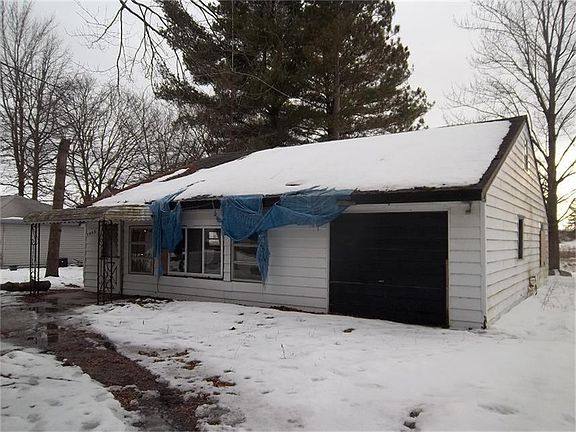Exterior Features:Aluminum siding, slab foundation, shingled roof in poor condition with several holes in it. All shingles on roof are in need of replacement. There are several windows covered with plywood. The rest of the windows have glass present. There are no soffits, no eaves present. There is a front, covered porch. Dirt driveway.Interior Features:This is a 2 bedroom, 1 bath home in the country. There is a living room and a dining room. Kitchen with refrigerator, range, oven, sink basin with no faucet and cupboards present. The bathroom has a toilet only. A lot of the ceiling has no drywall present. Many side walls are in need of drywall as well. All flooring needs to be replaced. There is a well pump, water heater present. No furnace present. There is a large, upstairs loft area that could be a third bedroom. Home is in poor condition.