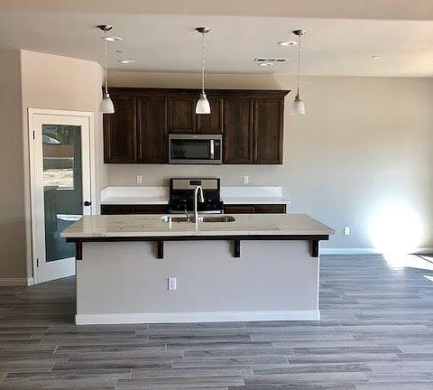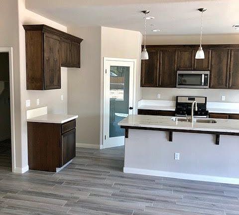 Brand New 1877 sq ft plan, with 4bed/2baths. Very open concept, Gourmet Kitchen with walk in pantry, granite counter tops, & stainless steel appliances. Custom deco-hood, large island, and 3x12 white subway backsplash. Granite counters in bathrooms with oversized vanities. Additional features include Acrylic Stucco, double entry door, and concrete tile roof. Large Aluma-Wood patio cover with outdoor entertainment area. 1500 sq/ft grass area in the back, perfect for outdoor play time. (Zoned for Animals)