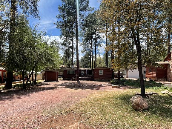 Only 1.5 hours North of the valley and you're home in the woods off a paved street. Enjoy evenings on the deck overlooking the yard while the children play or roasting marshmallows by the fire in the fire pit. Fenced backyard great for children and pets. The home has a wood burning stove that works wonderfully. Large storage shed for atv's, separate laundry room. Wildlife galore, Enjoy elk eating apples that have fallen from the apple tree in the front yard. Walking distance from the school and downtown. NO HOA. OWNER IS A LICENSED REALTOR IN AZ.