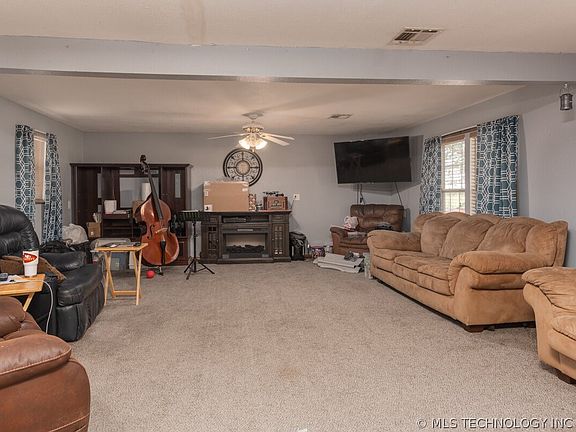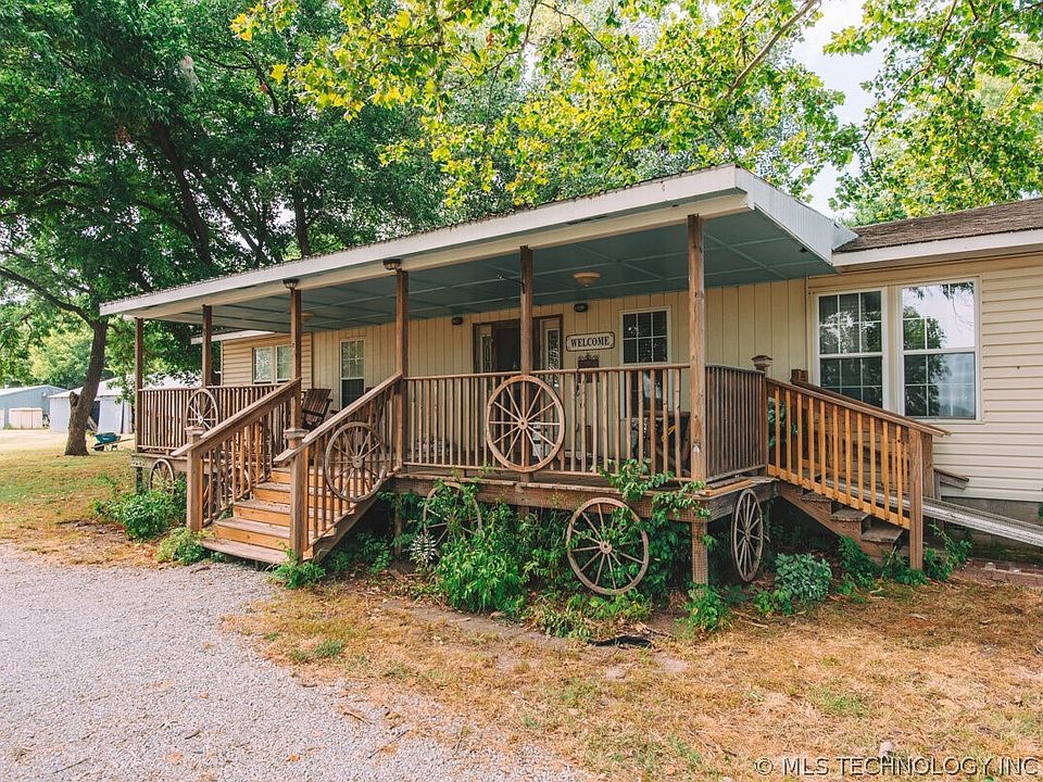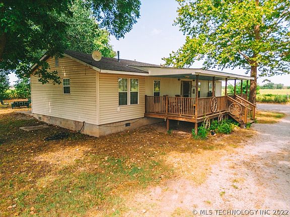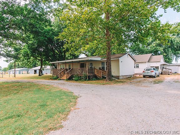 Peaceful country home with space and no neighbors, this property would make a great homestead for someone wanting to live life a little slower. Large living and dining rooms are great for entertaining big groups. Sitting on a low traffic paved road with great access to Bartlesville and Highway 75, you can reach all the local amenities in a matter of a few minutes. Roughly 7 acres consists of hay meadow and a pond provides the ability to hold some livestock. Additional features include a small storage building, two 40x80 shops with electric and water, two RV hookups, and multiple dog pens with dog run. Come pass time on the front porch with views of the downtown skyline.