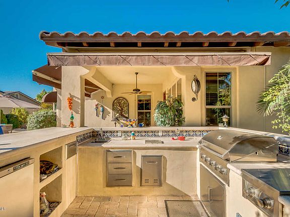 Amazingly well maintained and upgraded home in Verrado!This home is an entertainers dream. The sizable side yard features a large patio and wood burning fireplace. You will enjoy the long summer nights in the resort style back yard with a sparkling pool, fire pit, retractable awnings, and gorgeous outdoor kitchen with built in grill! To match the beauty of the backyard the kitchen has been upgraded with granite counters and stainless steel appliances. There is so much to list but please don't forget about the built in bar, Master Suite with remodeled bathroom (you have to check out the shower), laundry room with tons of storage, den, dual sink guest bath and did I mention it was on a large, corner lot?