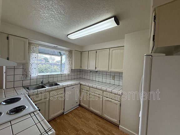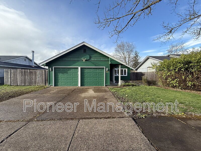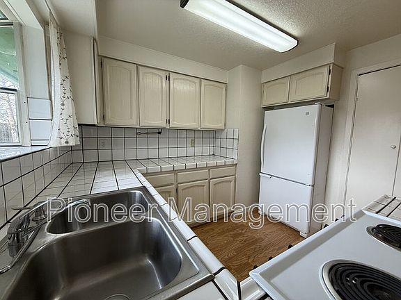 This home offers an open floor plan with 3 bedrooms, 2 bathrooms, a kitchen with an eating bar, a living room, and a family room with a pellet stove fireplace. The master bedroom has an attached bathroom and walk-in closet. The two-car attached garage has a workbench, shelving for storage plus a washer and dryer. There are patios in the front and back yards. The exterior also features a large, fenced, landscaped backyard with a tool shed and raised garden beds! Additional property features include a heat pump, vinyl windows, laminate floors, appliances, and RV parking. Half a mile to Churchill High School. Pet Details: -Yes -$500 pet deposit required for each pet -No aggressive breeds.