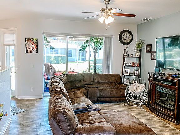 Welcome to a home that has been well loved but outgrown! This is a completely renovated 4 BR + den/office, with upgrades galore and preferred southern exposure. This home boasts an open floor plan, granite throughout, beautiful "wood" tile, a new roof (completed in 2019), a young AC unit with warranty, an extended covered lanai, surround sound throughout the home and patio, pocket doors and many more. The master has been restructured to include a large walk-in closet, a free-standing tub and spa-feel bathroom, and a romantic bedroom with a built in electric fireplace! The kitchen features 42" upper cabinets, beautiful neutral granite and stainless steel appliances. One of the bedrooms is the perfect guest/in-law suite with its own full bath and private entrance. This home has great curb appeal and a large backyard which can easily accommodate a pool. Located in a quiet, gated community, Forest Park is a well-maintained hidden gem with low HOA fees (inclusive of landscaping, cable and internet) located about 15 minutes to downtown Naples, 7 miles to the beach and 1 mile from I75 access. The community has a great clubhouse with a heated pool, exercise room and billiards room.