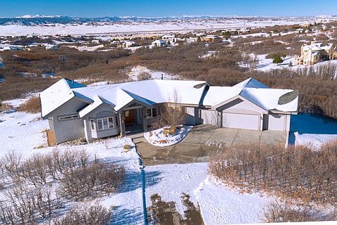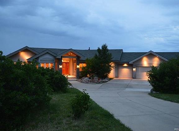 VIEWS VIEWS!! This custom built 6,519 sq ft ranch home is perfectly situated on 5 acres with amazing panoramic views of the entire front range. This home features an open floor plan with an enormous great room, chef's gourmet kitchen, formal dining room & finished walkout lower level. The great room features 13 ft vaulted ceilings with floor to ceiling picture windows to enjoy the breathtaking mountain views. The chef's gourmet kitchen showcases a Dacor double oven, Wolf 6 burner cooktop with griddle, slab granite counter tops, large island with a prep sink, knotty alder cabinets and huge walk in pantry. Spacious master suite retreat includes a fireplace, sitting area, coffee bar with sink and a luxurious 5 piece master bath. The finished walkout lower level showcases a family room, full wet bar and 3 guest suites with 2 full bathrooms. Enjoy a relaxing night on the 1,500 sq ft deck with family & friends. The 4 car oversized garage has a separate workshop with endless possibilities.