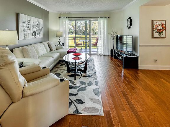 TURN KEY STUNNING CONDO WITH GOLF COURSE VIEWS! THIS PRISTINE CONDO FEATURES A 24' LONG TILED BALCONY OPENING INTO THE UPDATED EAT-IN KITCHEN, ENGINEER WOOD FLOORED LIVING ROOM & SPACIOUS MASTER BEDROOM WITH ITS ENSUITE BATH AND 2 CLOSETS. SPECIAL FEATURES INCLUDE ATTRACTIVE NEWER FURNISHINGS AND DECORATING,CONVENIENCE TO THE ELEVATOR,AND THE OWNERS' ATTENTION TO THE MAINTENANCE OF THIS CONDO. LOCATED CLOSE TO THE POOL, THERE IS AN ADDITIONAL POOL AT THE CLUBHOUSE WITH ITS TENNIS, GOLF, MEL'S BISTRO & ENTERTAINMENT, GYM, MOVIES, SHOWS, TRIPS, CLASSES & MORE!POINCIANA IS CONVENIENTLY LOCATED WITH COMMUTING, SHOPPING, RESTAURANTS, BEACH, KRAVIS CENTER, ROSEMARY SQUARE & MORE A SHORT DISTANCE AWAY. DO NOT MISS OUT ON THIS SALE!