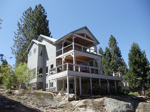 Truly one of the most spectacular and stunning homes in Shaver Lake! This gorgeous D&M built home in the quiet Musick Falls subdivision is teeming with custom elegant features and comes mostly furnished. This 2 story home has 3 bedrooms, 4 complete bathrooms and is located on a lot and a half. There are custom built Tom Mozzetti doors. Main level has glossy walnut wood flooring. Great room boasts almost floor to cathedral ceiling windows to take in the stunning view of Indian Rock. The rock wall/art that surrounds the fireplace is one-of-a-kind. Kitchen was beautifully designed by Deane Martin and features granite counters throughout, commercial grade range, 3 drawer dishwasher, subzero refrigerator and wine cooler. Master suite has a private deck and spa, the master bath has a striking solid slab granite shower. The enormous finished basement is complete with a bathroom and access to a covered patio and would be ideal for a gameroom or extra sleeping area- the options are endless!
