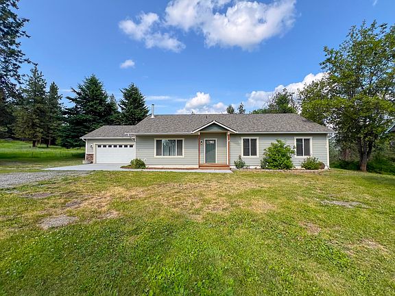 2014 frame built Lexar home on 4 acres, AND located within 10 minutes to Colville! This One-Level home has 3 spacious bedrooms, 2 full baths, and large 2 car attached garage! Enjoy the open floorplan that is perfect for entertaining with large island between the kitchen and dining area. Vaulted ceilings, wood floors, and brand new carpet in the living room. Wood stove and forced air furnace to keep the chill away on those winter nights, and large central cooling unit for those hot summer days! Outside you have a concrete patio leading to a large yard, fenced garden & chicken coop, and numerous small outbuildings. A detached workshop with plenty of room for your tools that includes 220, a canning kitchen, and tons of storage! Additional vehicle storage bays and community water system!
