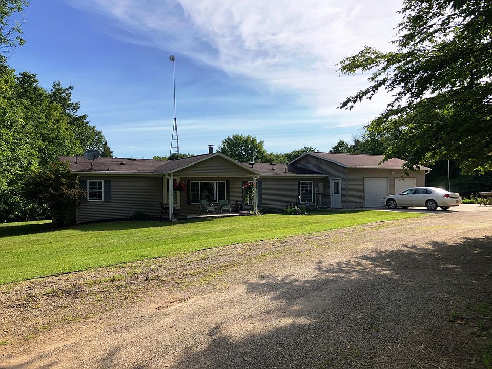 Large 3 BD, 2 BA home with attached garage. Clean and well maintained. Hilltop setting with 20 wooded acres with two Amish built deer blinds strategically placed for the hunter in the family.