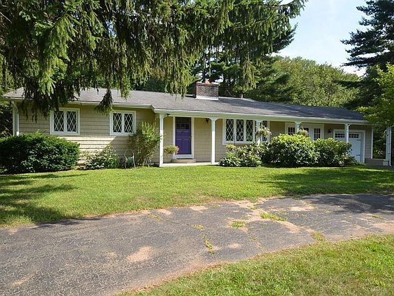 Life can be good in this lovingly maintained and tastefully updated home. From garage, you enter into large "breezeway" to drop everything.Sit and enjoy the summer nights. Newer eat-in Kitchen has maple cabinets, granite counters and a cozy fireplace in the dining area. Spacious living/dining room overlook the picturesque, private yard. Master bedroom has an on suite bath w/shower. Two additional bedrooms and a full bath complete the upstairs. Downstairs the family room is above grade with a bank of windows that make space light & bright as well as a fireplace to keep those winter nights cozy. An additional room could serve as a 4th bedroom and/or study. Updates including: new septic, kitchen, windows, roof, siding, refinished hardwood floors,Buderus boiler & more. Minutes from Bay Rd. leading to Amherst and or Route 202 to points East and West. Close to MacDuffie School & Cindy's. Circular drive on this well maintained home on 1.63 well landscaped acre lot.